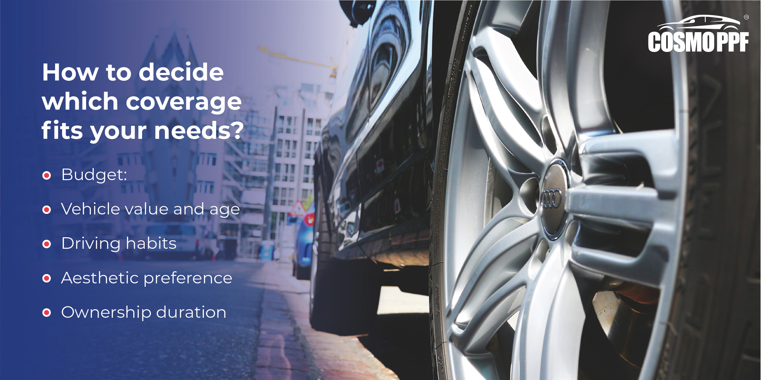 - Budget: Full-body PPF on the car is a larger investment. Partial coverage is more wallet friendly.